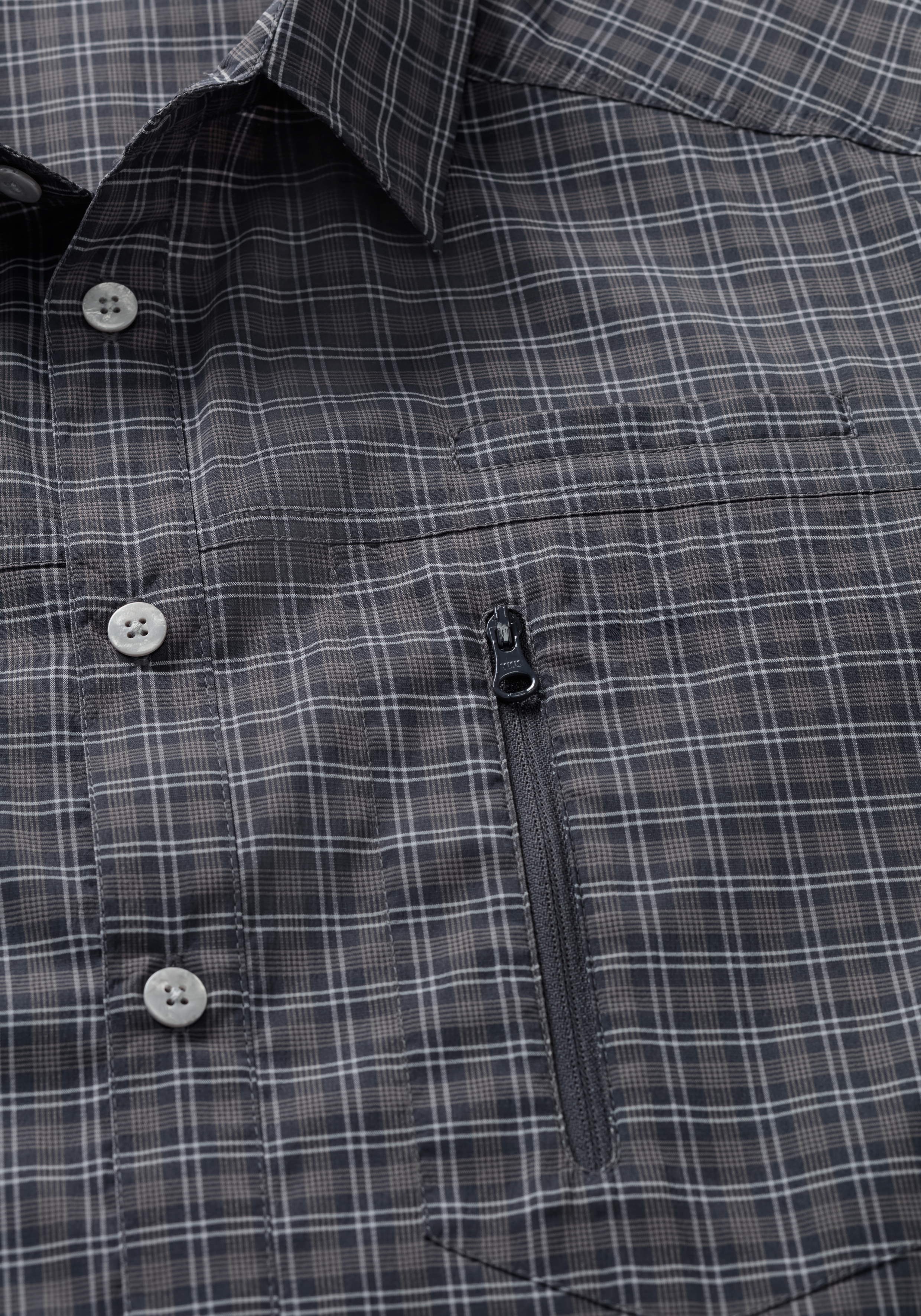 - Sinnvolle Details wie Sonnenkragen und Brusttasche