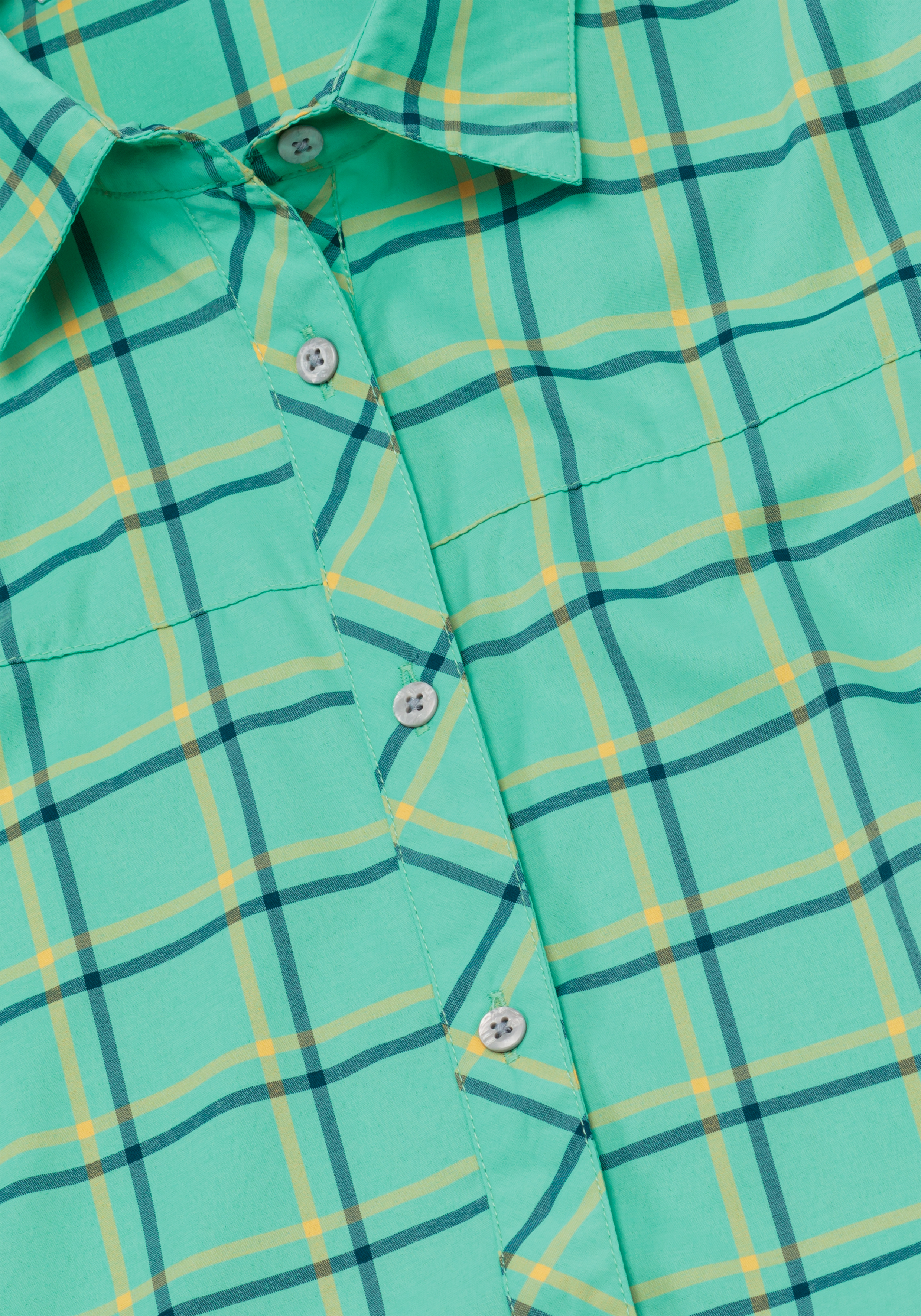 Free repair service The KENDRA S/S W short-sleeve shirt is a hiking essential in summer. Made from flexible 2-way stretch fabric, this functional shirt is specially designed for being active outdoors. Thanks to our dryprotec and Silverplus® technologies, the shirt is both breathable and quick-drying, so it stays feeling fresh for longer on warm summer days. And it's stylish checked design means you can continue wearing the KENDRA S/S W at post-hike socials in the cabin. The shirt has a feminine cut and a summery collar that can be turned up. There's also a small zip pocket on the chest with space for small items like your smartphone or key.